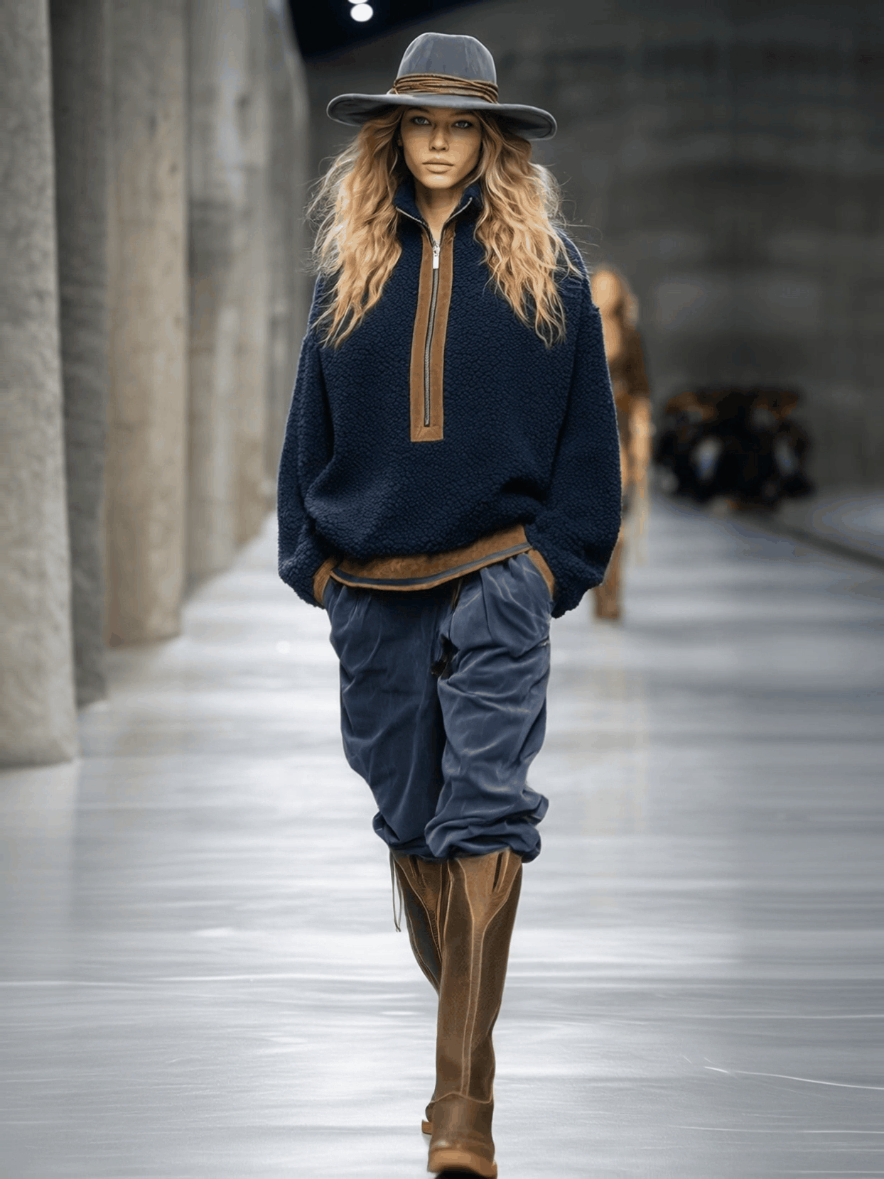 Retro And Fashionable Brown Trim Blue Teddy Fleece Sweatshirt