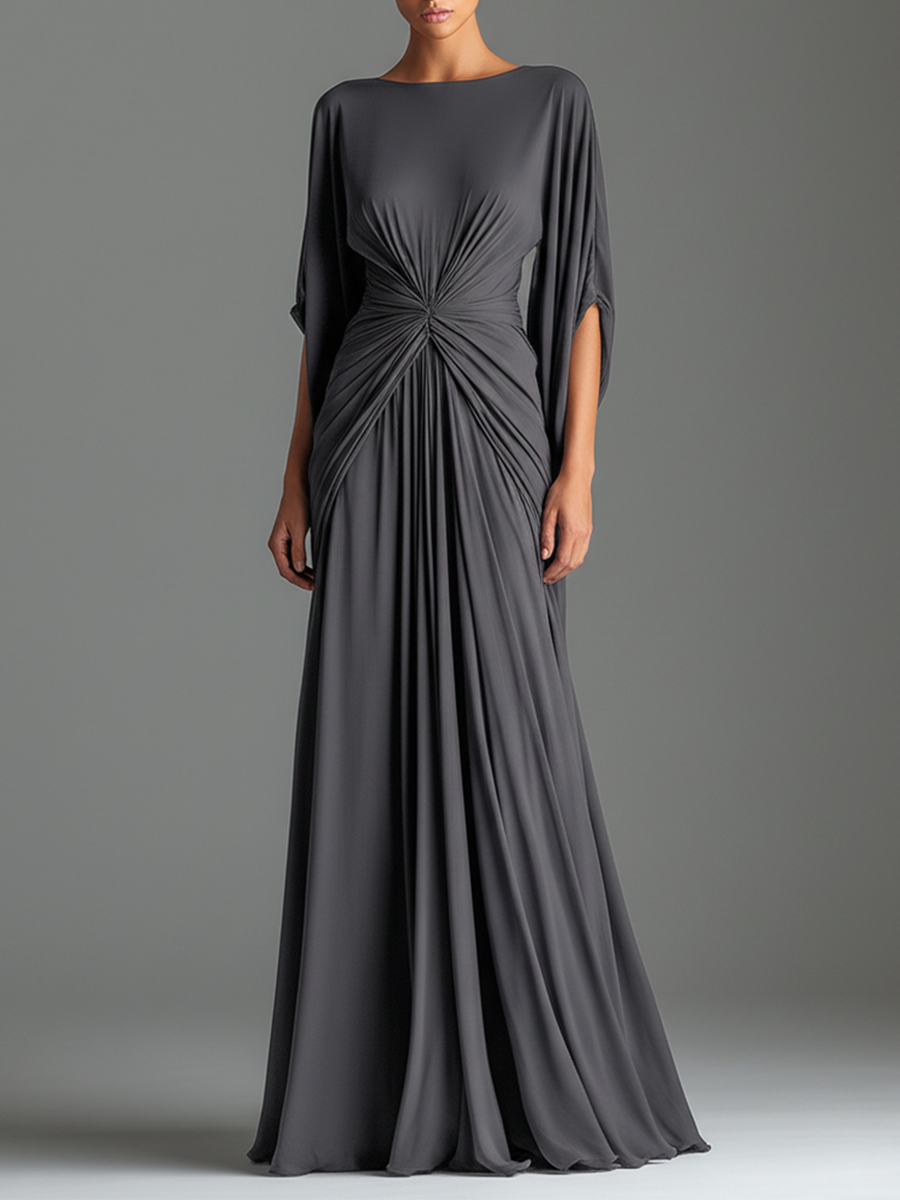 Women's Jet Black Fluid Dress With Round Neck & Flowy Maxi Skirt, Modern Bold-Elegant Style Dress MDZ1693A9I