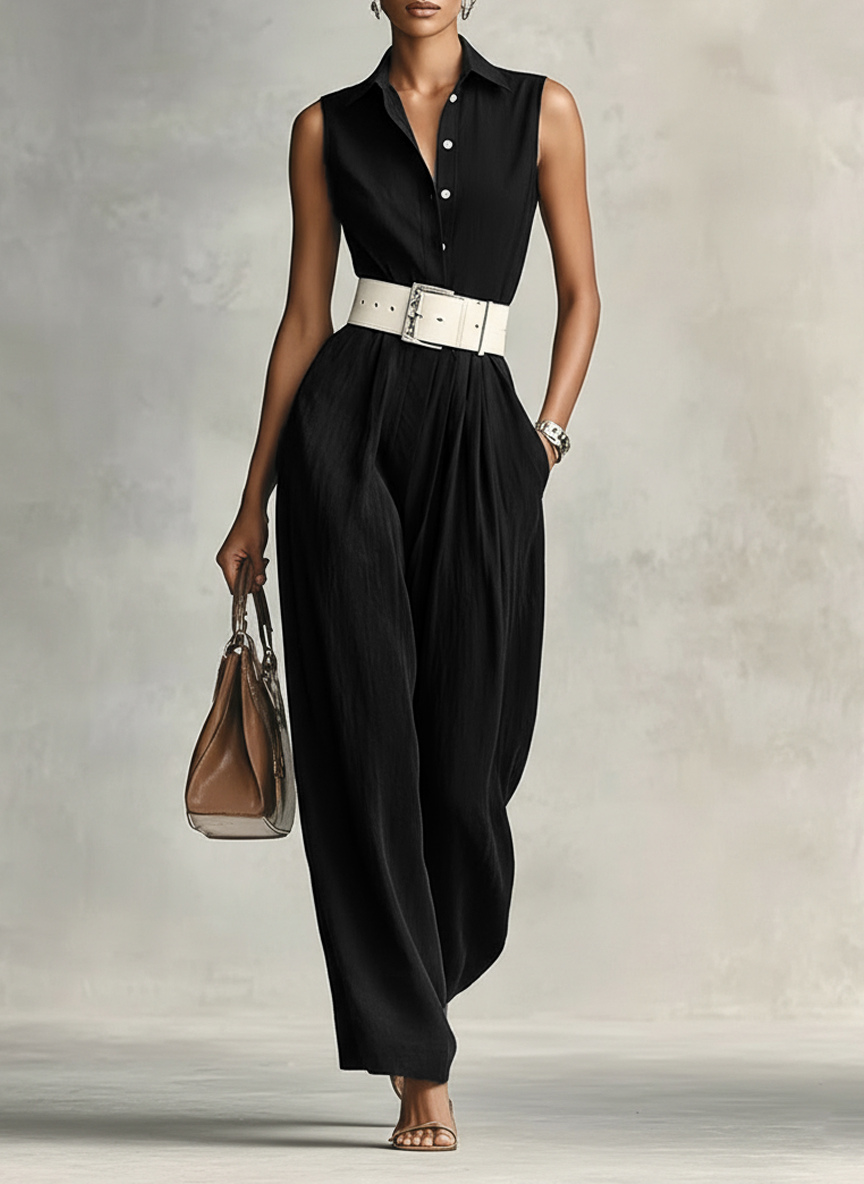 Women's Minimalist Lapel Sleeveless Jumpsuit With Belt MDZ1267A2Y
