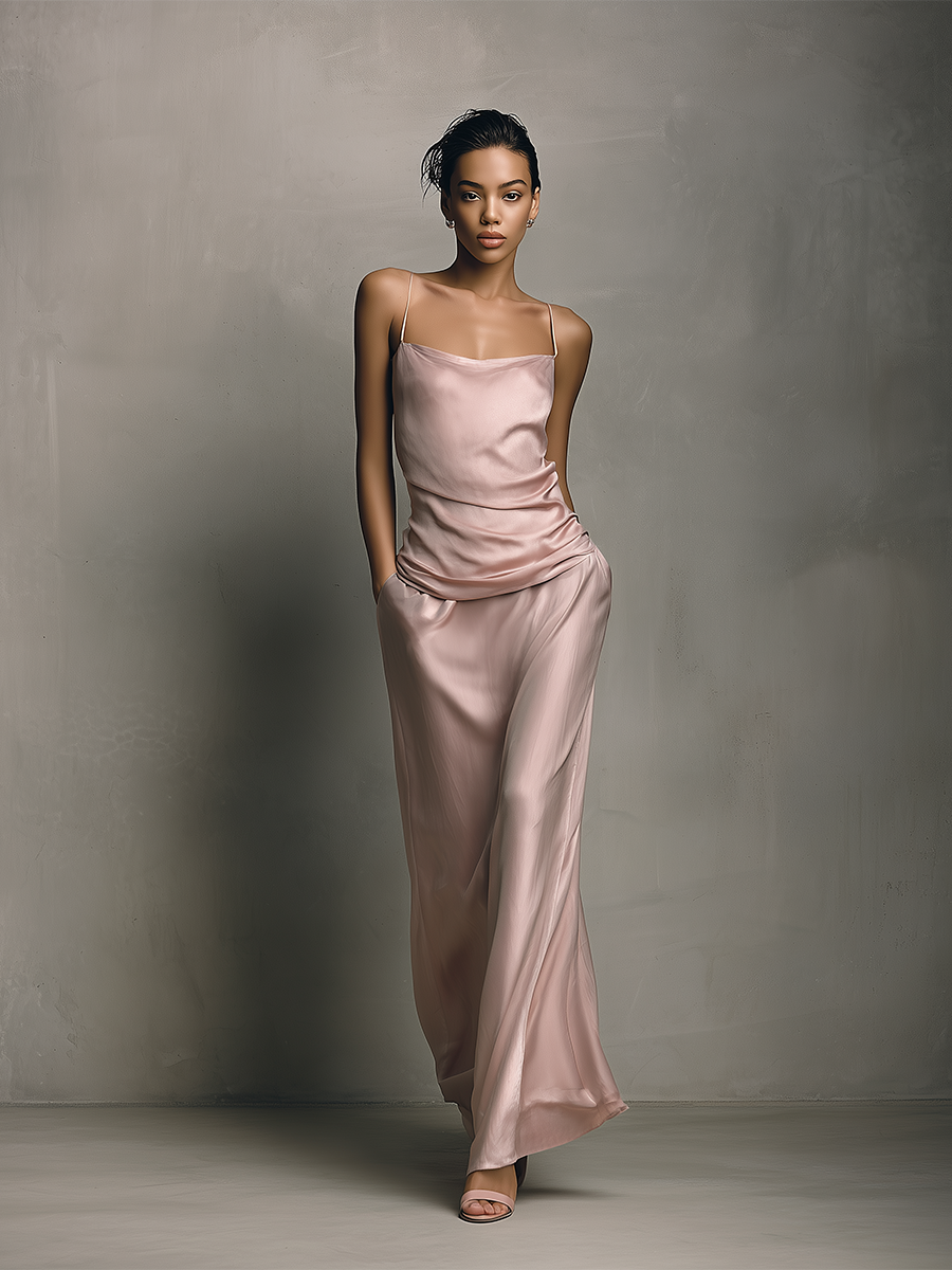 Elegant Women's Pink Acetate Satin Camisole And Skirt Set MDZ1504A6BA