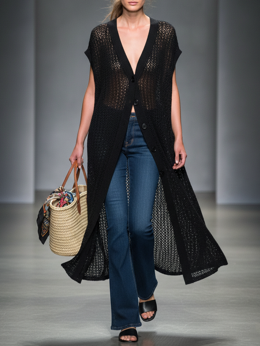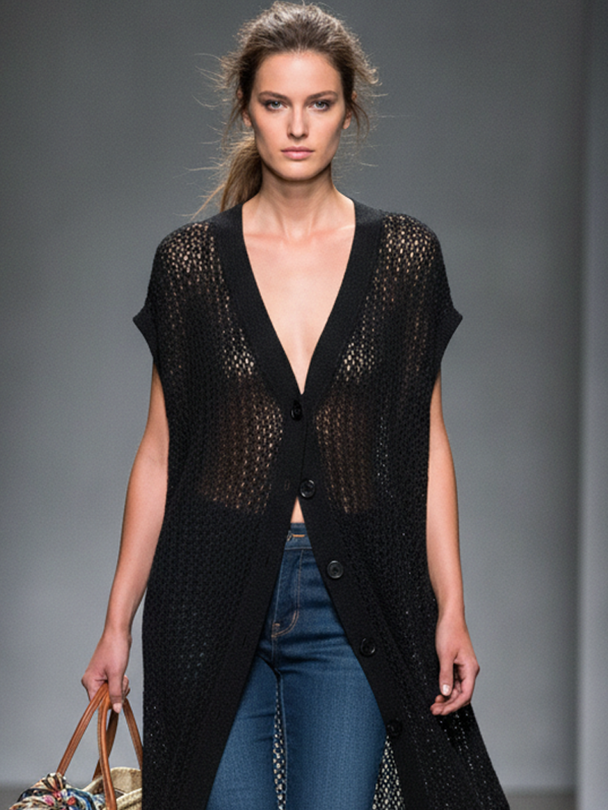 Women's Minimalist Knitted Mesh Short-sleeved Single-breasted Cardigan MDZ0984A6Y