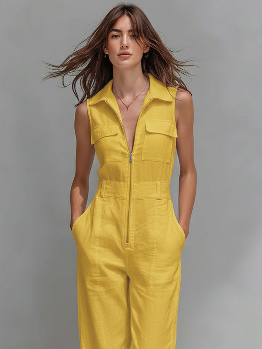 Women's Minimalist Zippered Lapel Sleeveless Jumpsuit MDZ1369A1Y