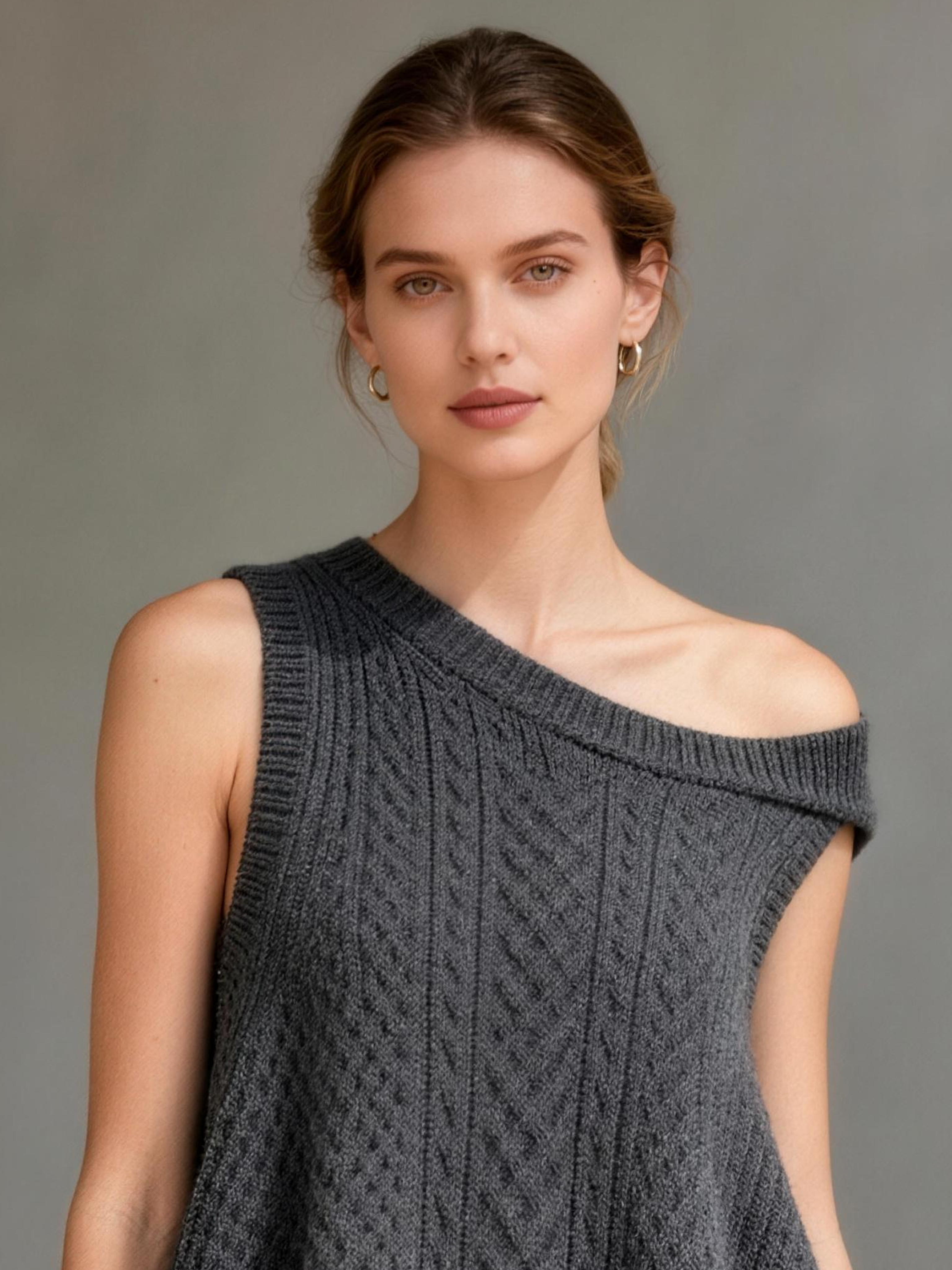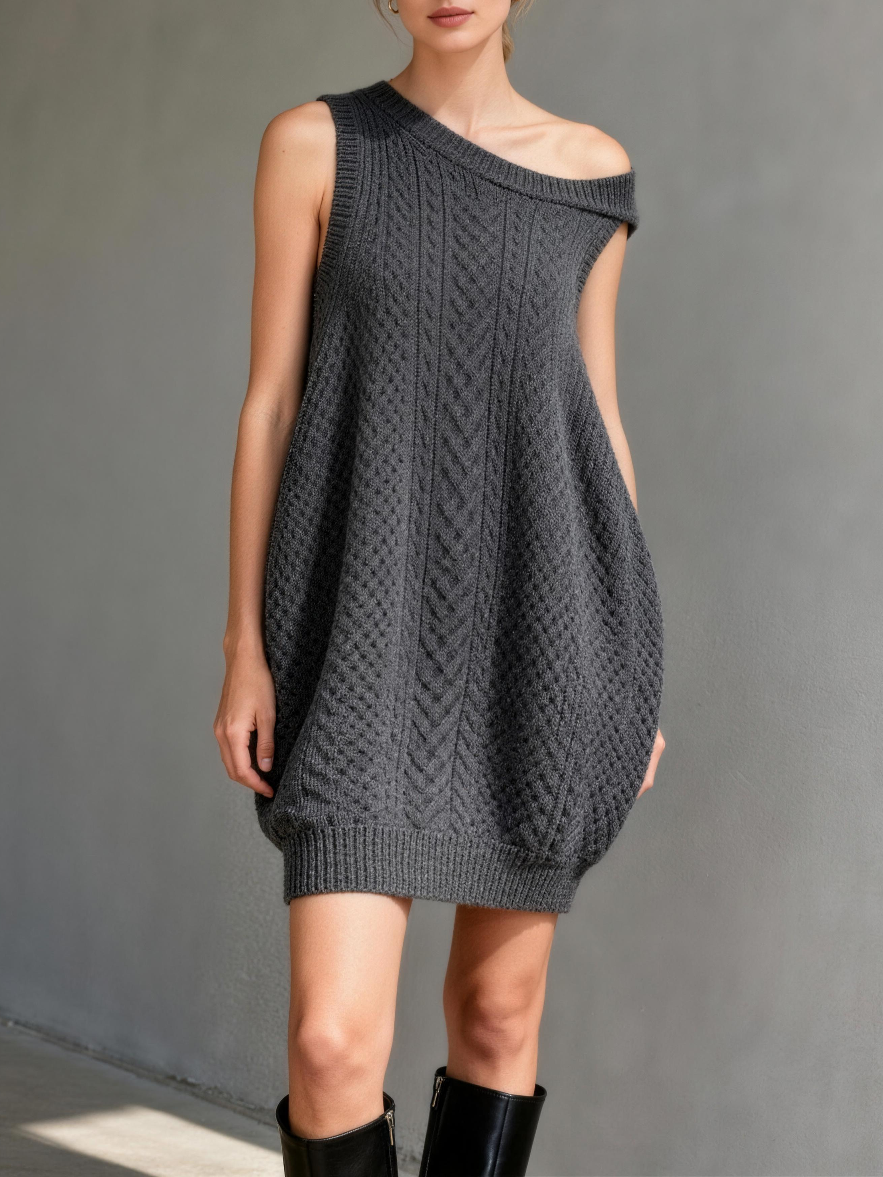 Women's Simple Off-the-shoulder Cable Knit Mini Dress MDZ0526A7Y