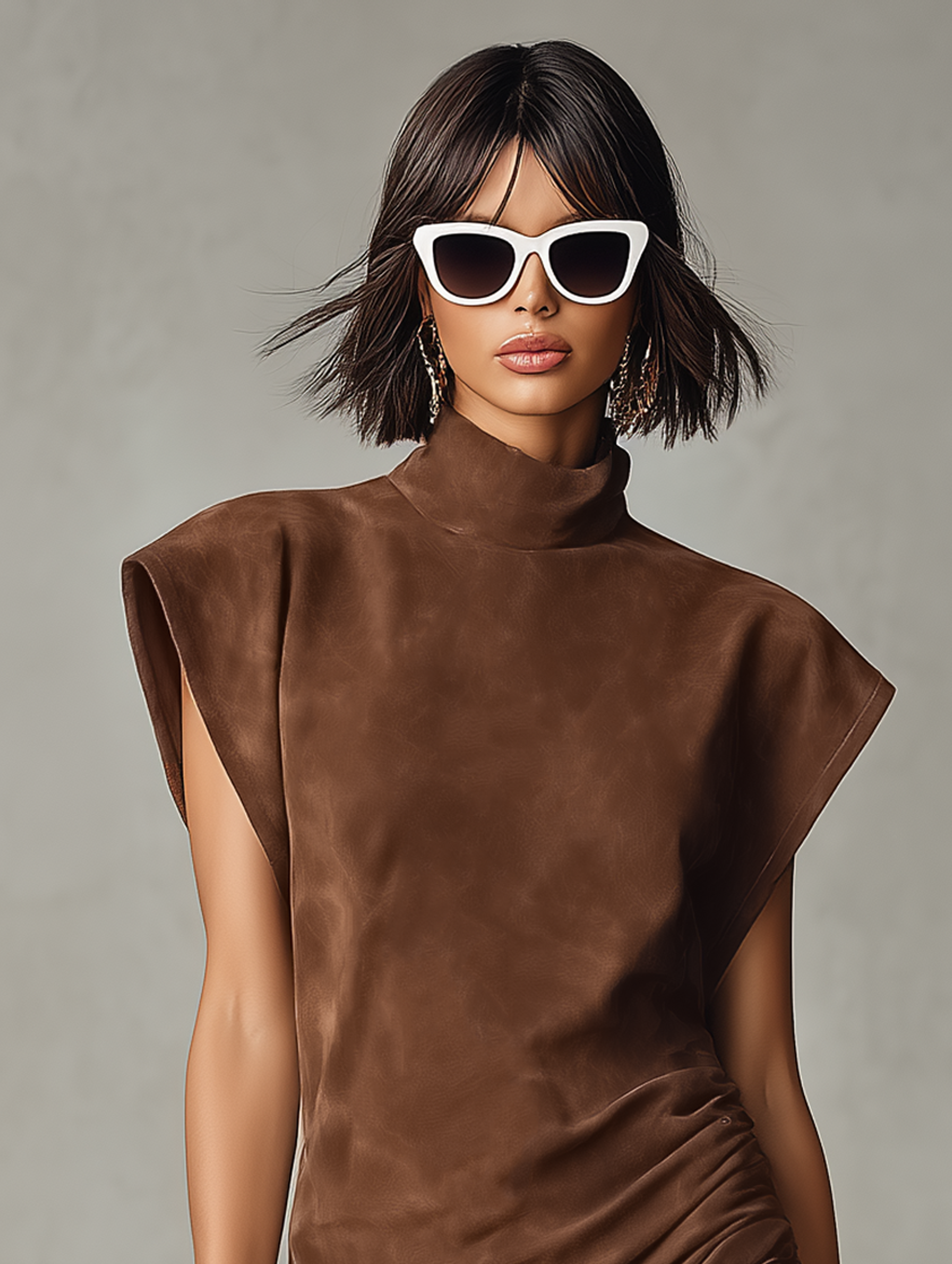 Women's Minimalist Faux Suede Zip-up Collar Sleeveless Mini Dress MDZ0568A4Y