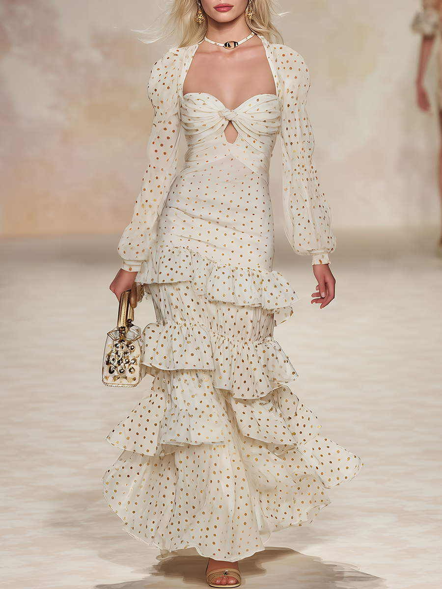 Stylish And Elegant Heart-shaped Neckline Ruffled Chiffon Long Dress