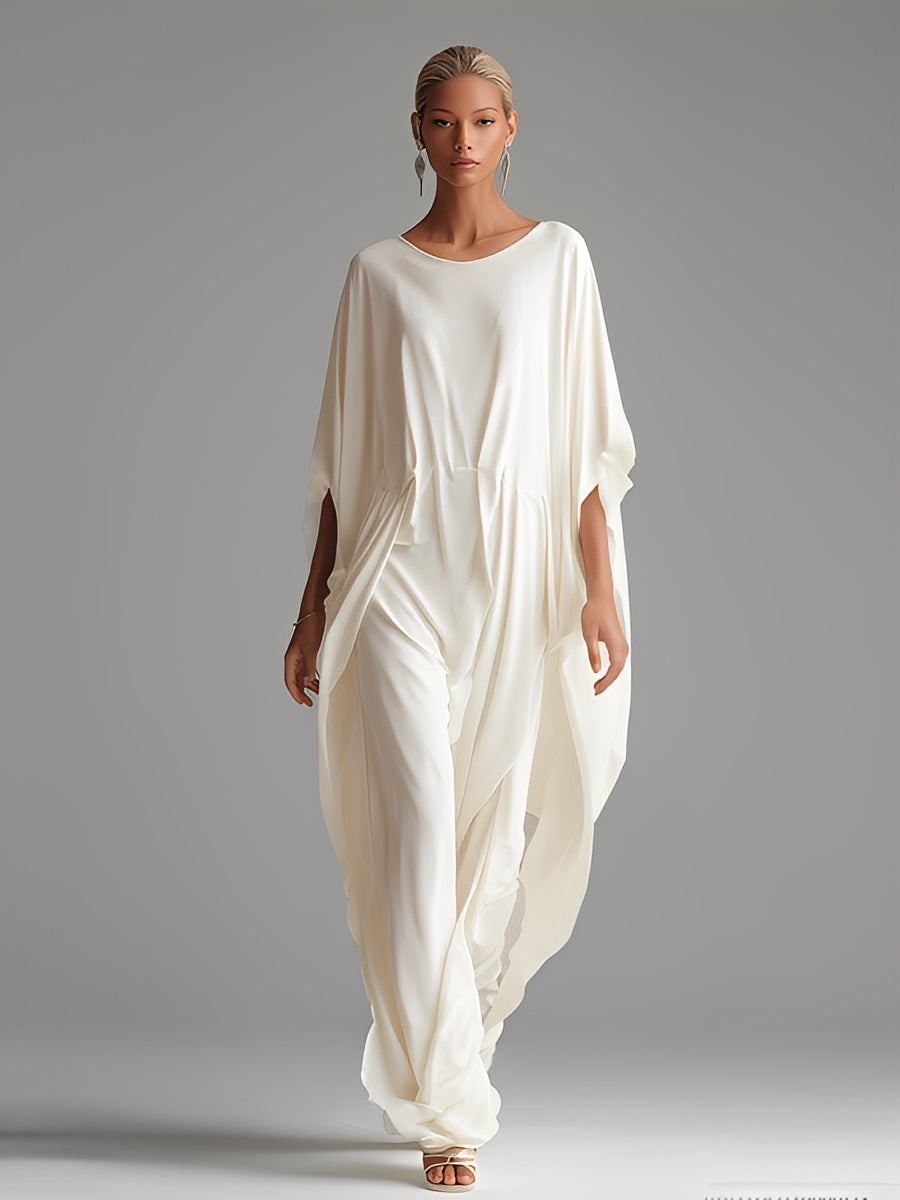 Women's Cream Woven Dress With Oversized Silhouette & Cinched Waist, Modern Minimalist-Chic Style Dress MDZ1626A0I